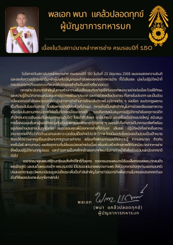 ในโอกาสวันสถาปนาเหล่าทหารช่าง ครบรอบป ที 150 ในวันที 23 มิถุนายน 2568 ผมขอแสดงความยินดี