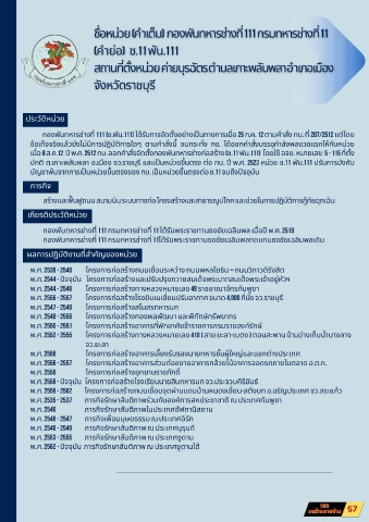 ปกติ ต.เกาะพลับพลา อ.เมือง จว.ราชบุรี และเป นหน่วยขึ นตรง ต่อ ทบ. ป พ.ศ. 2523 หน่วย ช.11 พัน.111 ปรับการบังคับ